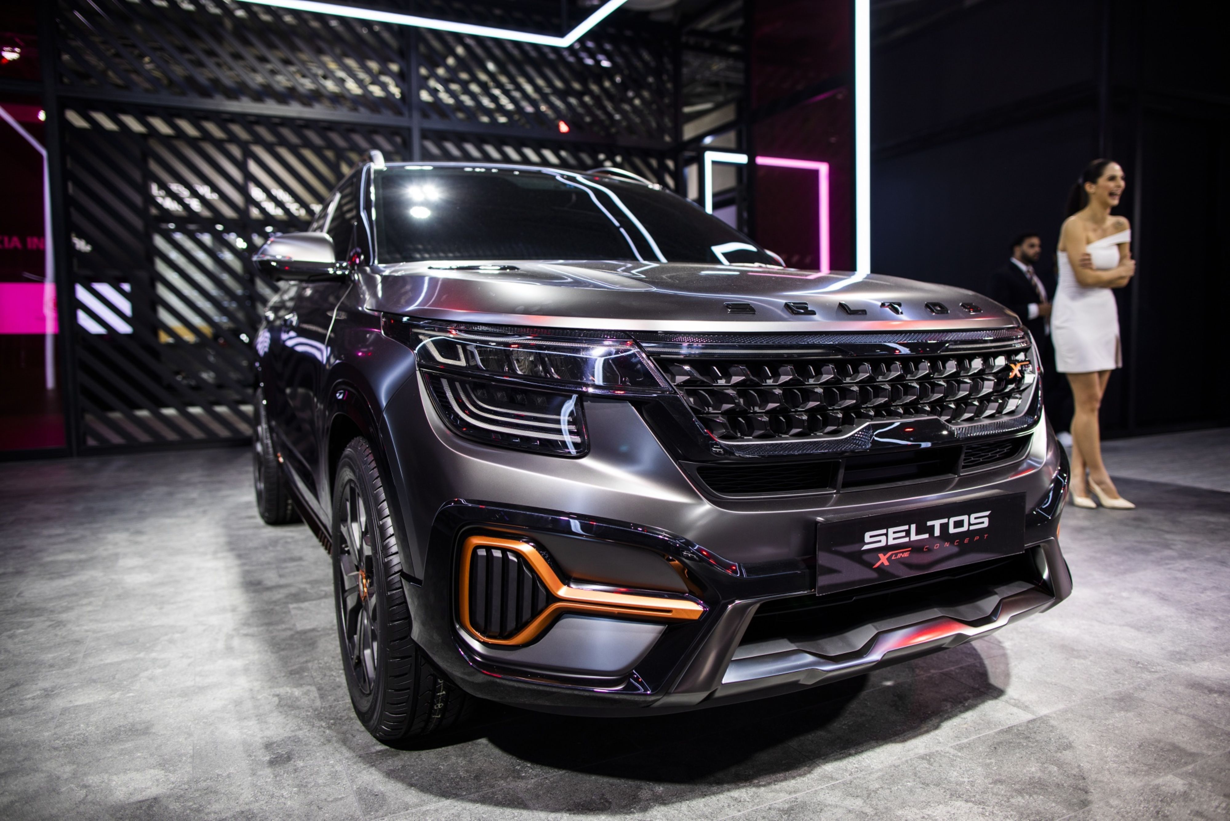 A Kia Motors Corp. Seltos X-Line Urban Concept vehicle sits on display at the Auto Expo 2020 in Noida. (Photographer: Prashanth Vishwanathan/Bloomberg)