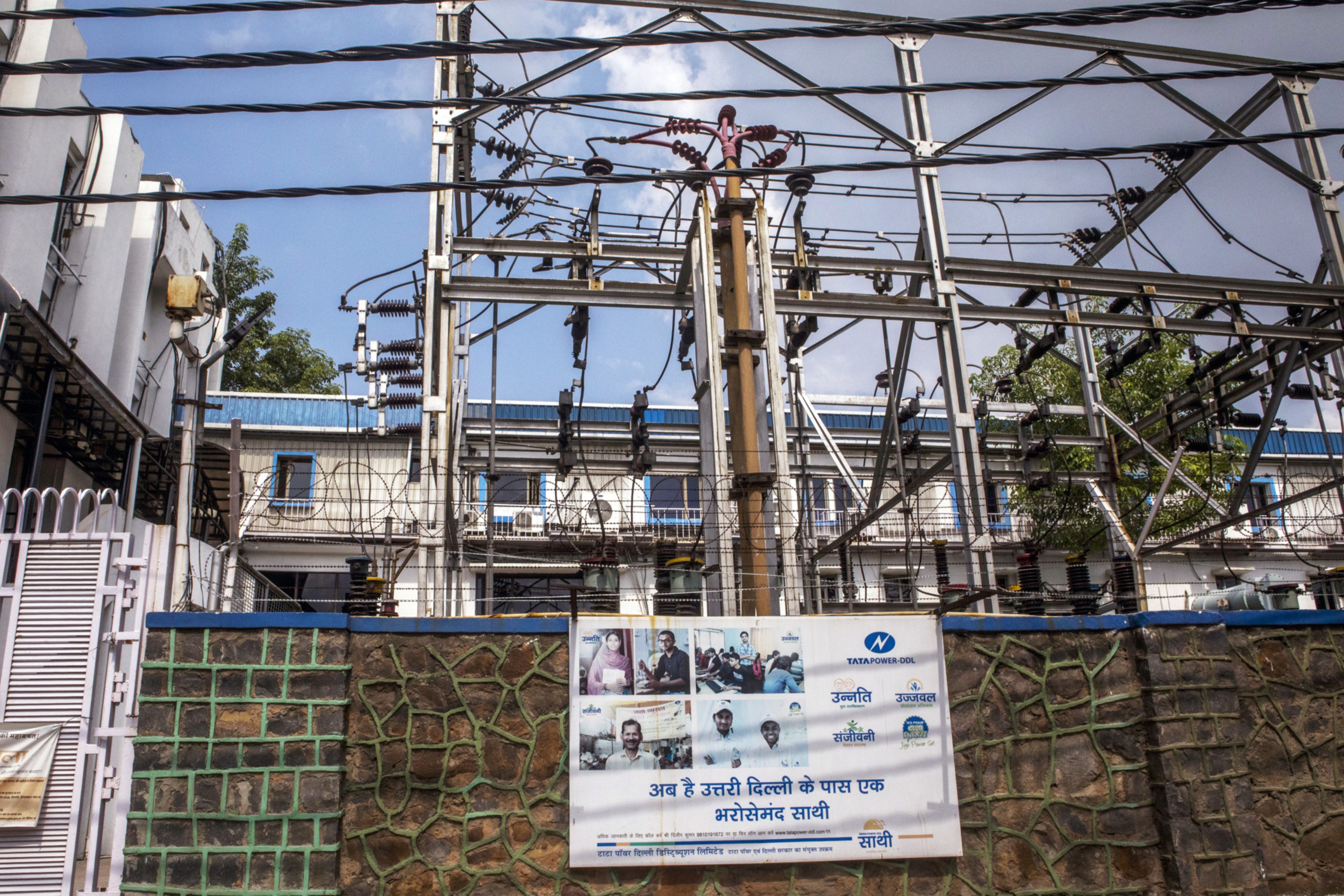 An electrical substation stands outside a Tata Power Delhi Distribution Ltd. office in New Delhi, India. (Photographer: Prashanth Vishwanathan/Bloomberg)