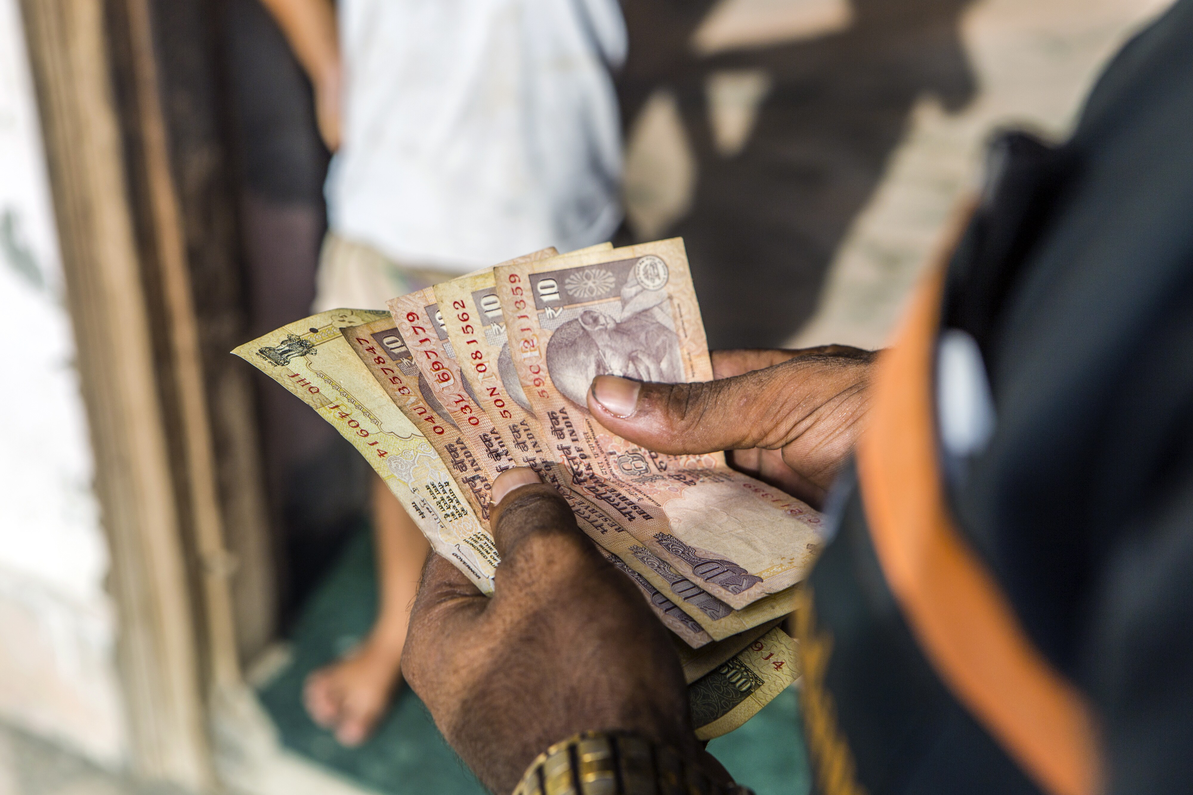 An employee counts Indian rupee banknotes (Photographer: Prashanth Vishwanathan/Bloomberg)