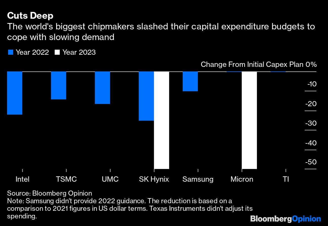 A year ago, the world was short of chips and suppliers were rushing to buy equipment and crank up output. In the past month, they have collectively slashed 2022 budgets by more than $16 billion and are preparing to reduce spending next year.