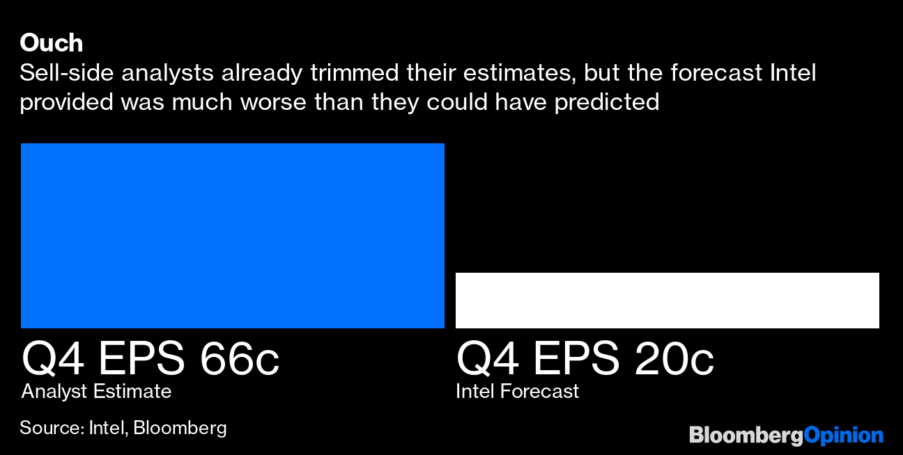 The malaise in the semiconductor industry can be best summed up by the disaster unfolding at Intel Corp., the largest US chipmaker. As a supplier of components for computers and servers, Intel was hit hard by the slowdown and is desperately trying to adjust even as it pledges to catch up to rivals Taiwan Semiconductor Manufacturing Co. and Samsung Electronics Corp. But the cost cuts won't come in time to help fourth-quarter numbers.