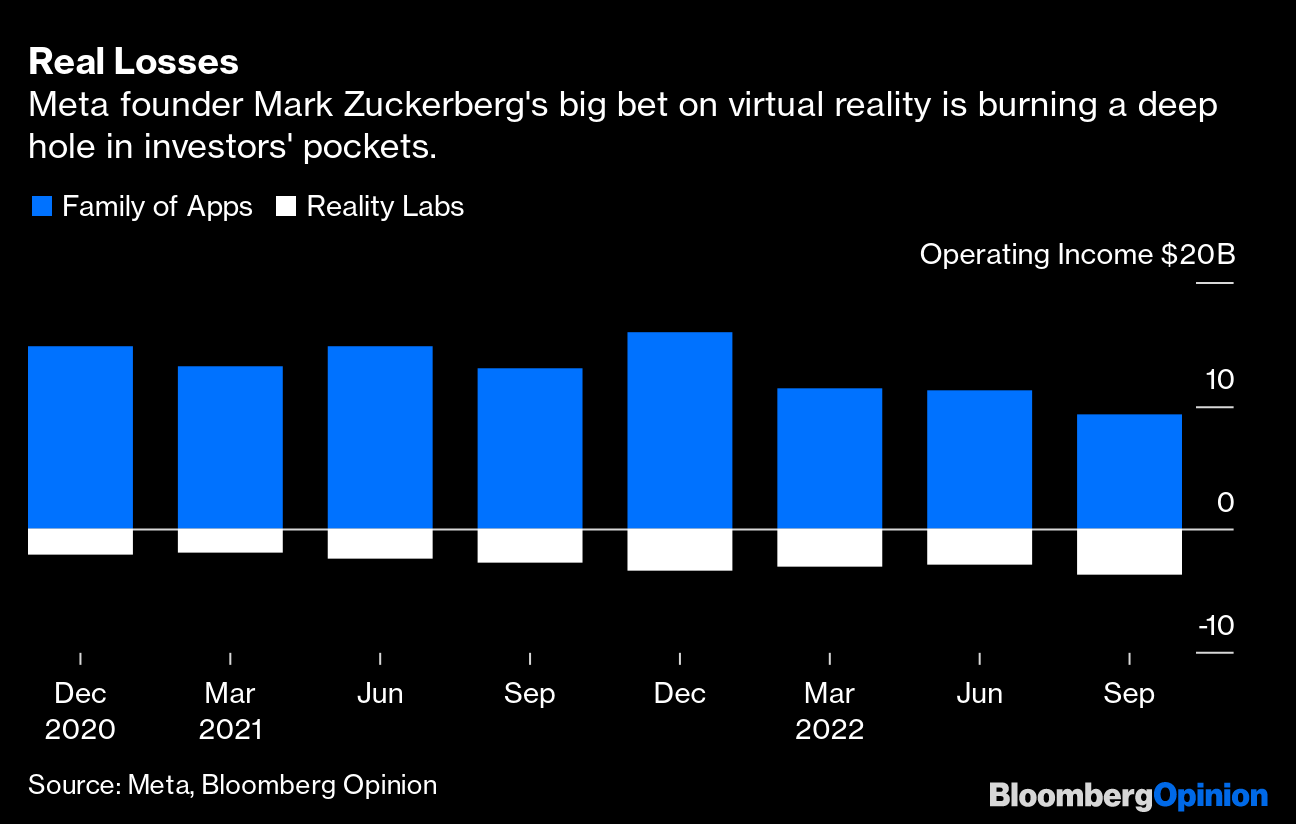 Meanwhile, the social media company is burning money on its Reality Labs division — founder Mark Zuckerberg's venture into virtual reality and the metaverse that inspired last year's name change. That business has lost more than $20 billion to date, and Zuckerberg told investors to expect the shortfall to continue for a while.