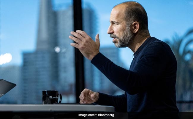 Dara Khosrowshahi, chief executive officer of Uber Technologies Inc., speaks during a Bloomberg Technology television interview in San Francisco, California, U.S., on Tuesday, Dec. 14, 2021. Khosrowshahi said the ride-hailing giant had its best week last week since the start of the pandemic.