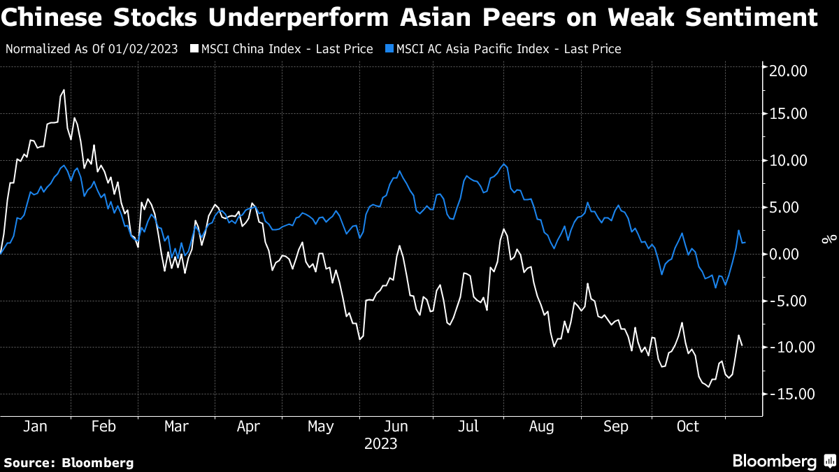 China's stocks are reeling from the years-long debt crisis and an exodus of foreigners, who are withdrawing money at the fastest pace since 2015. The MSCI China Index has fallen almost 10% this year and ranks among the world's worst performers.
