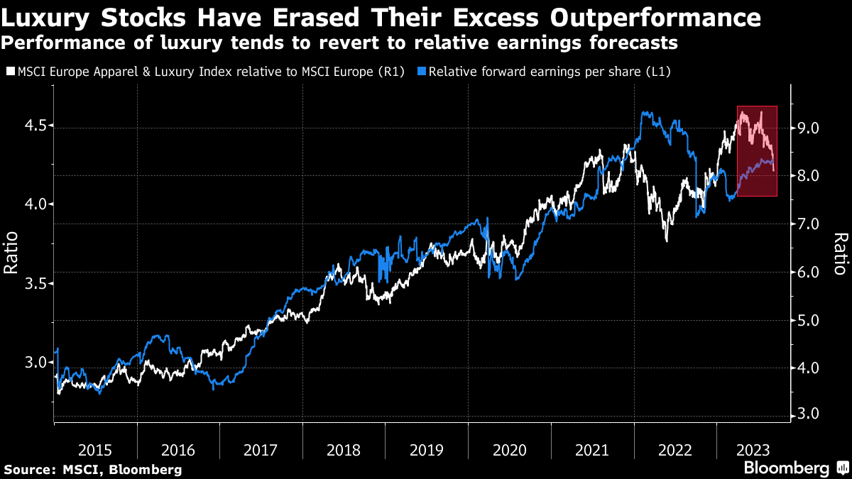 A warning from the chairman of Cartier-owner Richemont that stubborn inflation was starting to affect demand in Europe prompted a swoon in luxury stocks last week. That downbeat message added to a string of worrying economic signals from China and signs of softer trends in the US.