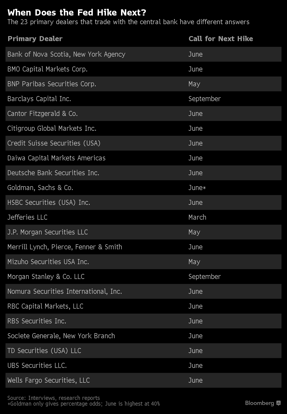 Read more: Most primary dealers see two Fed hikes this year starting in June