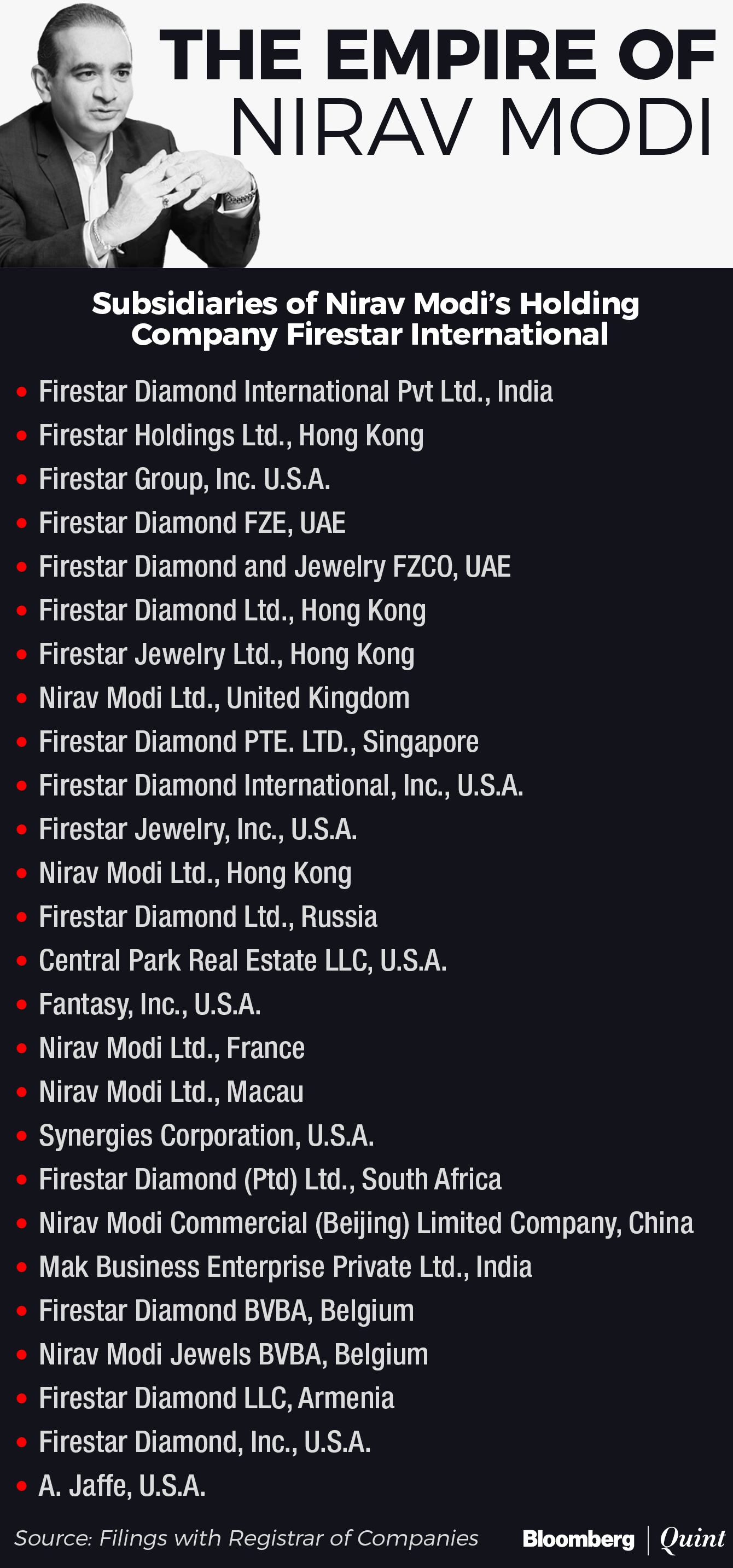 Modi had offered to repay at least Rs 6,000 crore by selling assets, bank officials who didn't want to be identified told BloombergQuint. Here's a snapshot of his empire: