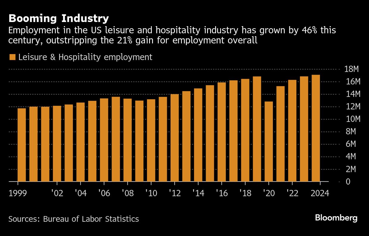 And yet, let's not forget that a significant number of workers — around a quarter — have no access to paid holidays or vacation. Many of them are part-time and in the bottom 25% of earners, toiling in service occupations or working in leisure and hospitality.