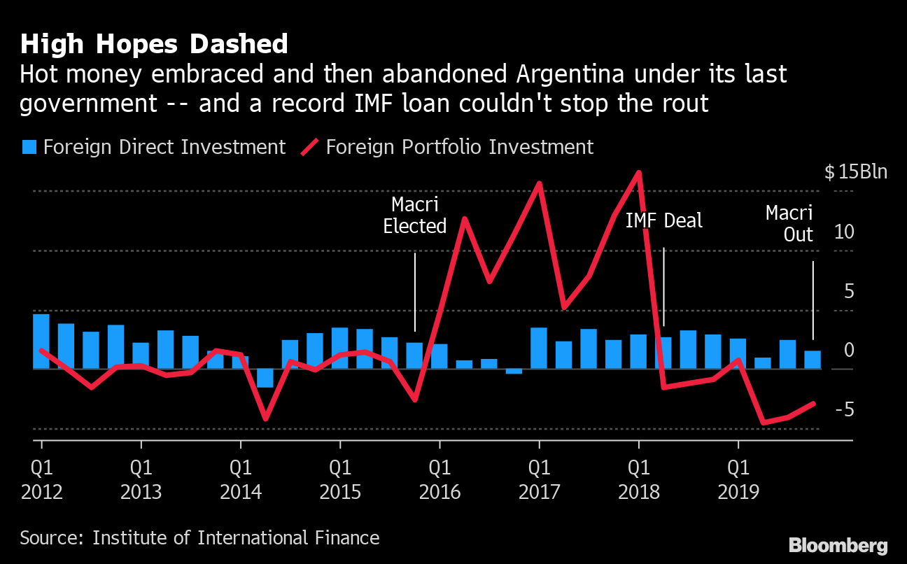 But Macri's stewardship of the economy proved disastrous. His agenda of fiscal belt-tightening stalled in congress, markets began to panic over rising inflation and a widening budget gap, and the IMF rescue effort couldn't turn things around. Voters booted him out of office in 2019.