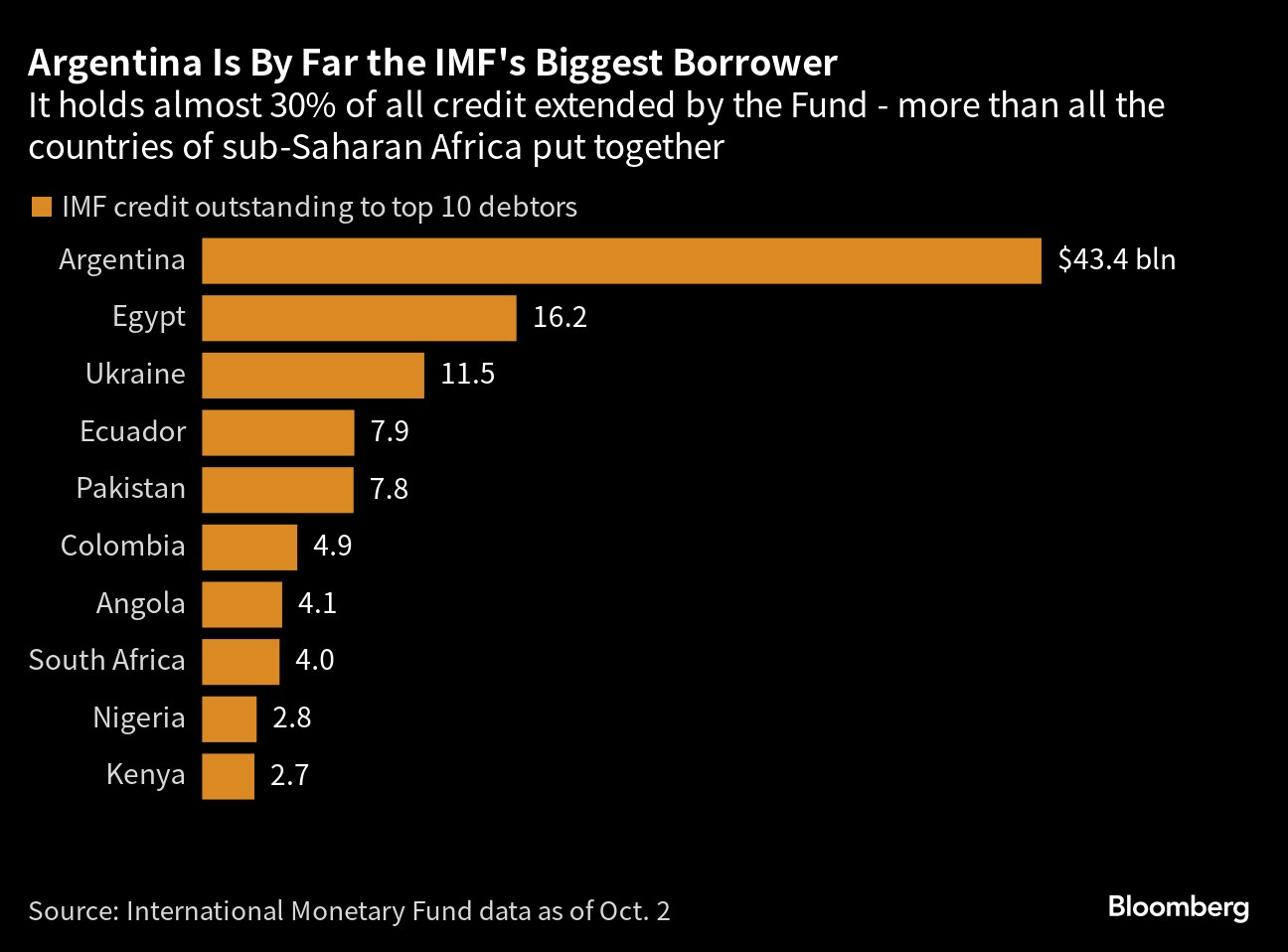 The cash came out of an $18 billion swap line with the Chinese central bank. Next week, while IMF chiefs and members are meeting in Morocco, Argentina's outgoing President Alberto Fernandez (who's not seeking reelection) is due in Beijing — to plead for more of that credit to be made available. Argentina also has an invite to join China and Russia in the BRICS group of emerging nations, seen as a rival to US-led alliances.