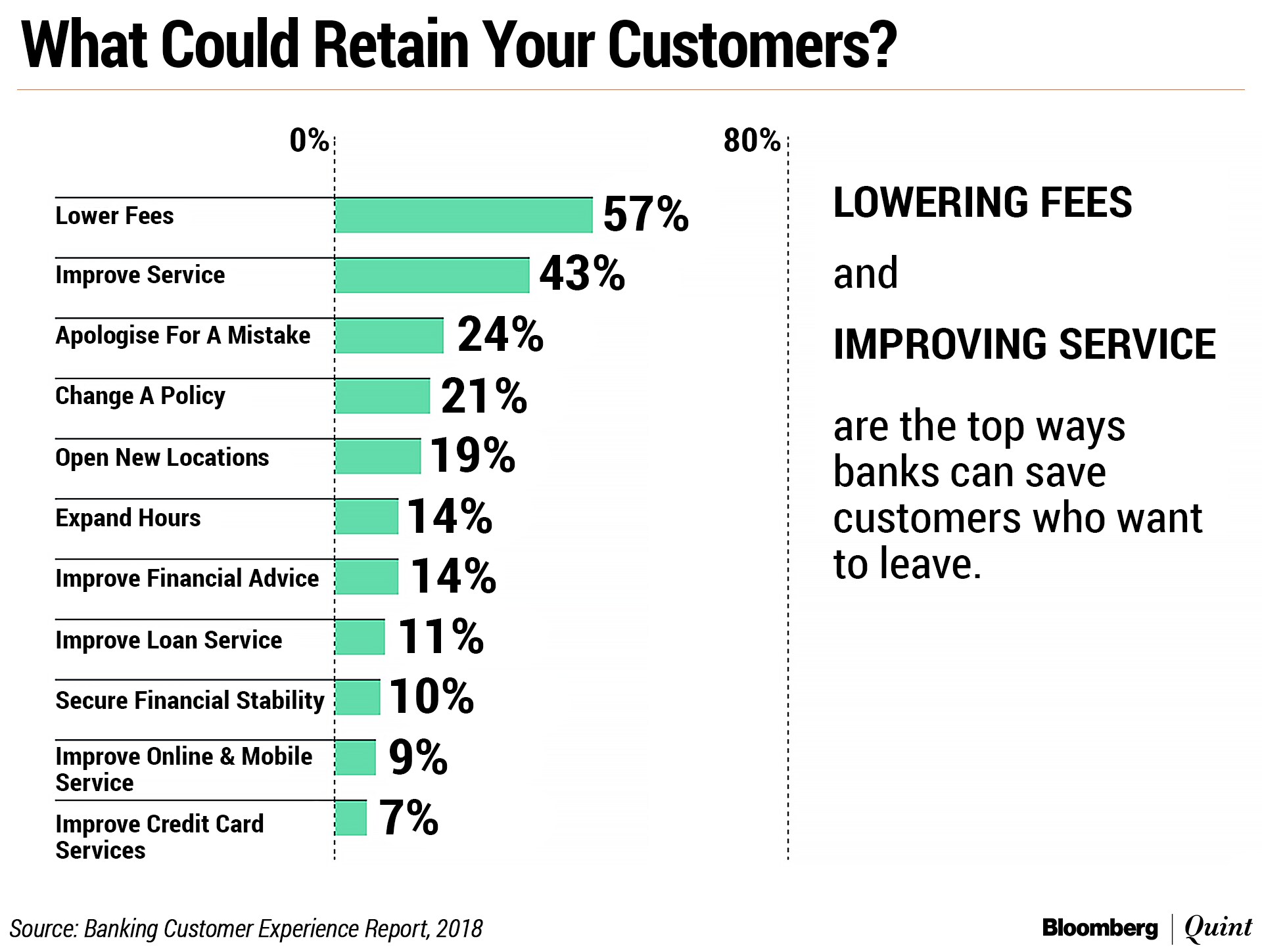 In the Banking Customer Experience Report, 2018, 56 percent of respondents who actually left the bank, answered they would have stayed if the Bank made any effort to retain them. The efforts could be in as many directions as follows: