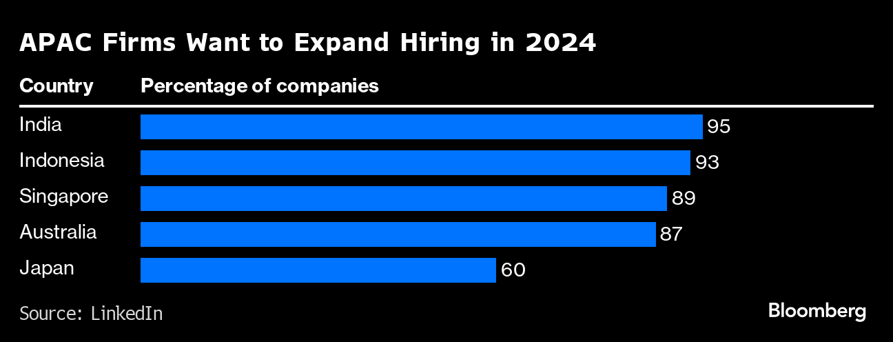 The shift in mentality comes as the majority of organizations in Asia-Pacific plan to expand their workforces in the coming year, LinkedIn said, with the aim to increase hiring most pronounced in India, Indonesia, Singapore and Australia.