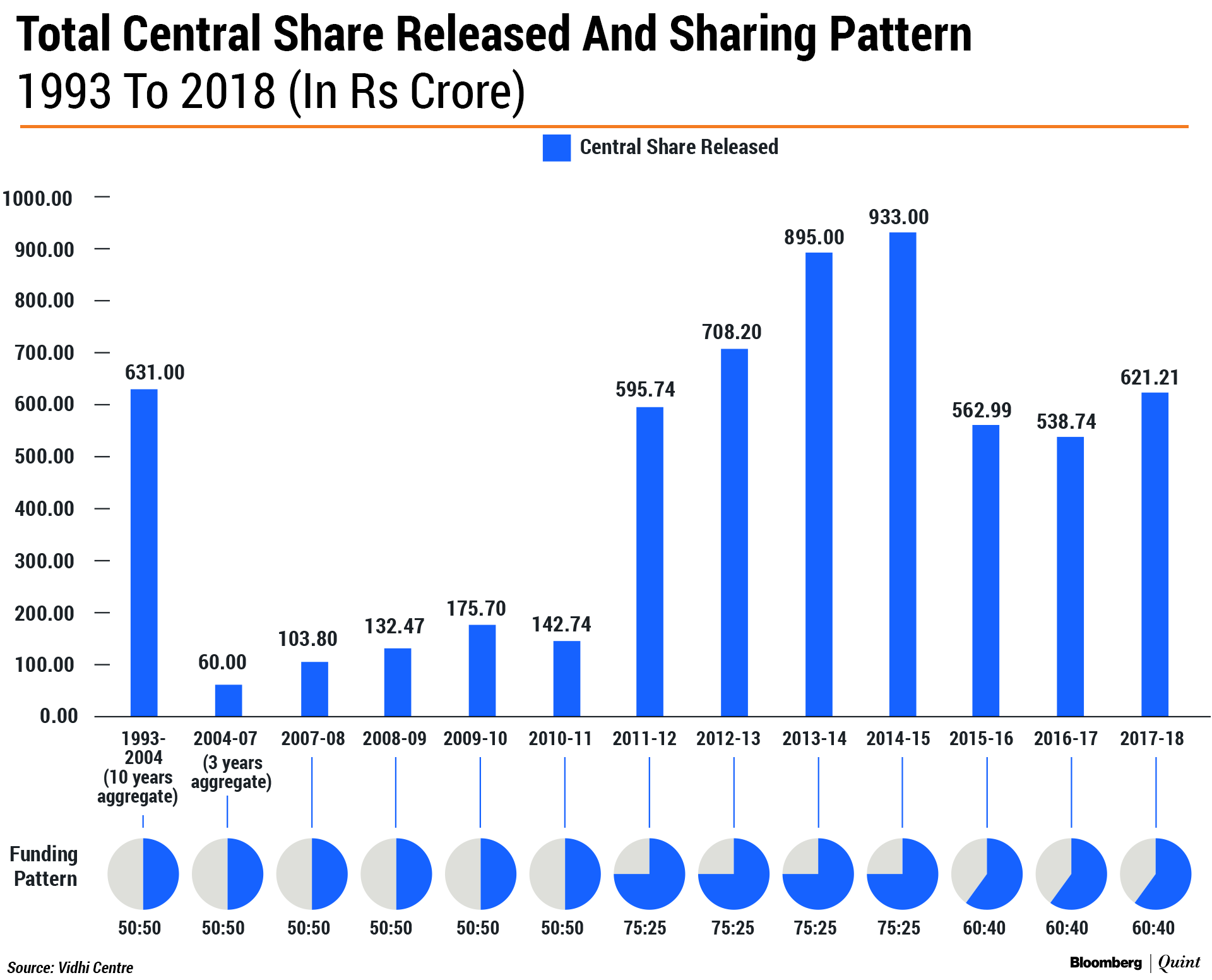 So far, from 1993-94 to 2018-19, Rs 6,750.24 crore have been released by the centre under the scheme. Rs 710 crore is expected to be released in 2019-20 which would put the central share alone at Rs 7,460.24 crore.