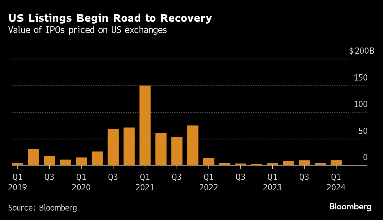 That eagerness has translated into the best start to the year for the reception of first-time share sales since 2019. Buoyed by Astera and Reddit's respective jumps of more than 90% and around 40%, the 48 deals that priced in the first quarter are up about 25% on a weighted average, according to data compiled by Bloomberg.