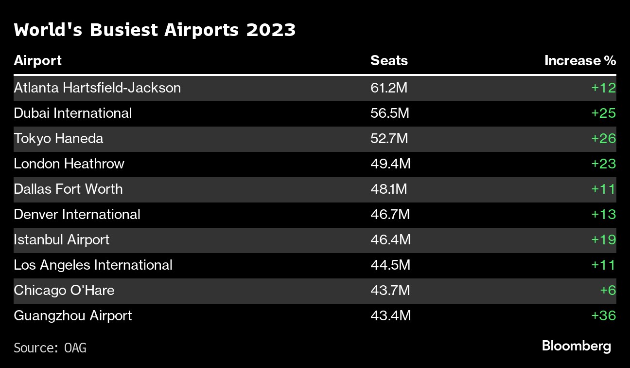 Atlanta remained the world's busiest airport in 2023, OAG said. It was followed by Dubai and Haneda in Tokyo.