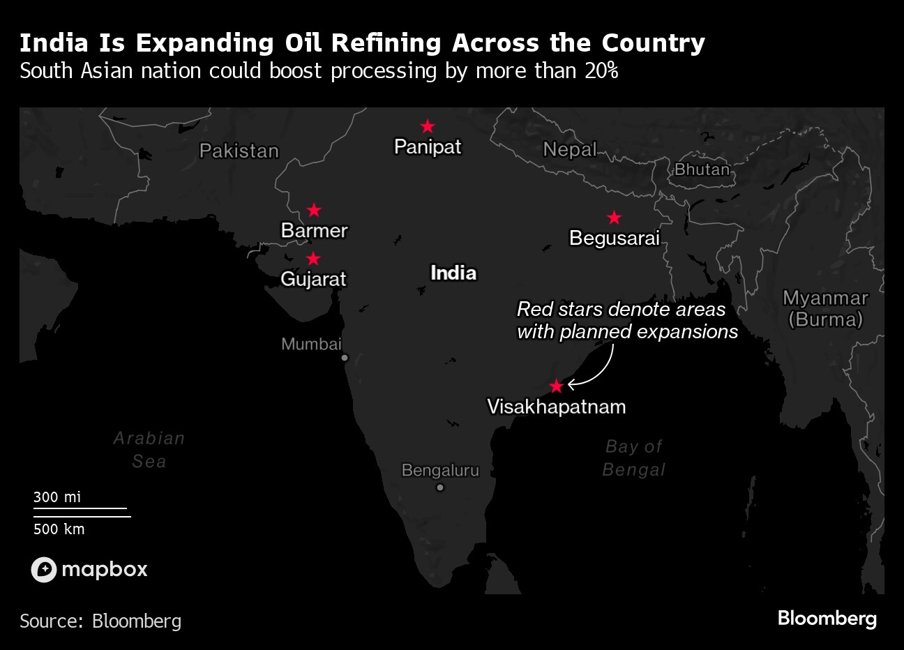 It's a rare boost for a global refining industry that's in a state of decline in the US and Europe, while China's massive sector is adjusting to Beijing's green goals after years of development made it a processing powerhouse. By contrast, India's growing transport demand and the slower adoption of electric vehicles will keep appetite for gasoline and diesel higher for longer.