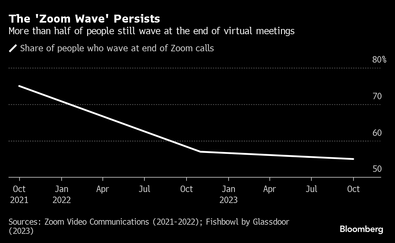 (Bloomberg) -- It happens at the end of most virtual meetings: One person waves goodbye, and colleagues follow suit. Why we still do this, nearly four years after remote work went mainstream, is one of the mysteries of the modern workplace.