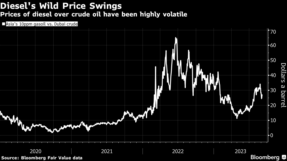 The price of diesel — the fuel that powers the global economy — has outpaced the rise in crude after a slew of refinery outages partly due to excessive heat.