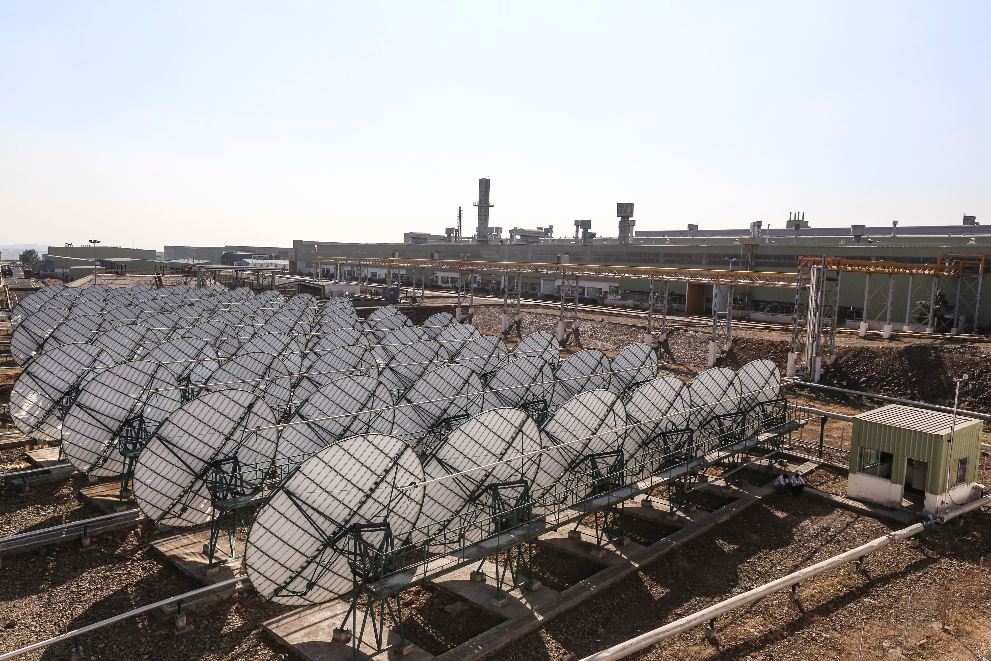 Solar reflectors developed by Thermax Ltd at a Mahindra and Mahindra manufacturing plant ( Photographer: Dhiraj Singh/Bloomberg)