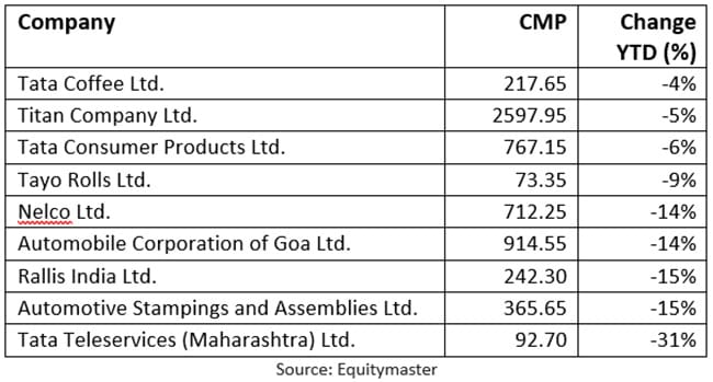 Several stocks from the Tata Group have given negative returns so far in 2023. Even the strongest Tata Group companies such as Titan and NELCO are down 5-20%.