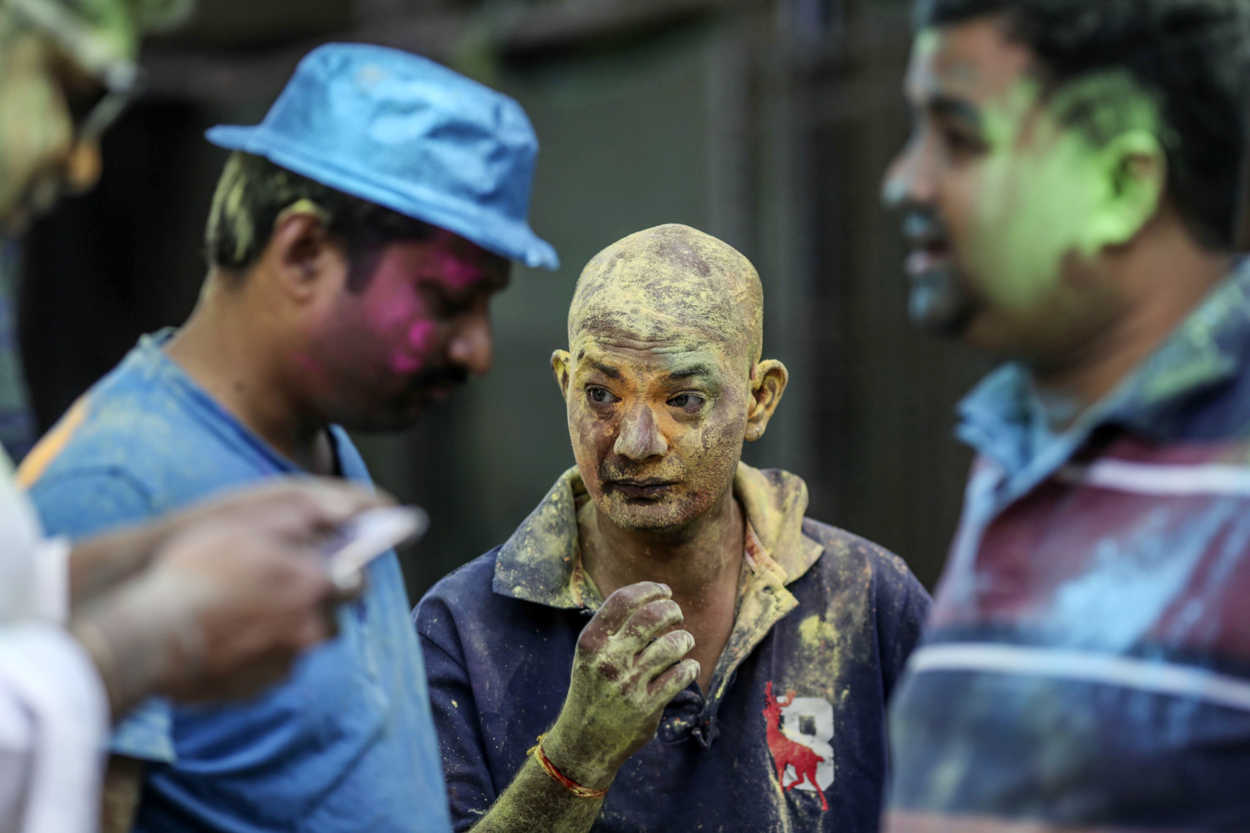 Shopping And Celebrations At Holi Ahead of CPI Figures Men covered in coloured powders celebrate Holi in Mumbai, India, on Monday, March 13, 2017. India is scheduled to release Consumer Price Index (CPI) figures for February on March 14. Dhiraj Singh/Bloomberg