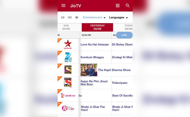 Launched in September last year, JioTV started out with about 200 channels in mostly regional content. Since then, JioTV has increased the number of its live stream channels to 400 plus in 15 regional languages – the highest by any TV service provider – effectively making the app a set-top box for mobile phone users with the only cost involved being data usage charges. In April, JioTV added HBO HD to its list of available channels.