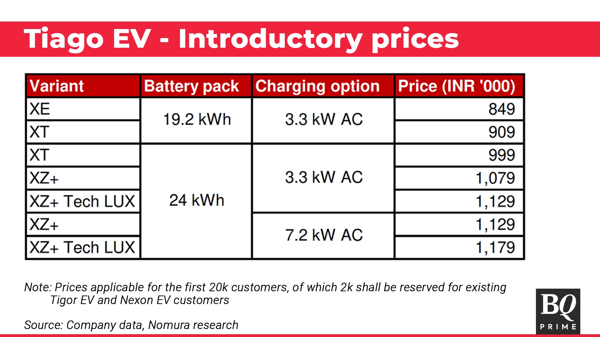 According to Morgan Stanley, the Tiago EV's smaller battery version, which has a claimed range of 250 km, will be good enough for 150 km on the road, whereby consumers may face “range anxiety”. Electric cars also get much less support than electric two-wheelers as there is no FAME-II subsidy for them.
