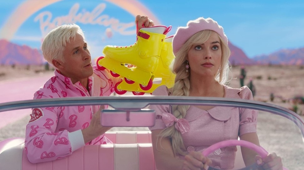 Ryan Gosling and Margot Robbie in a still from Barbie.