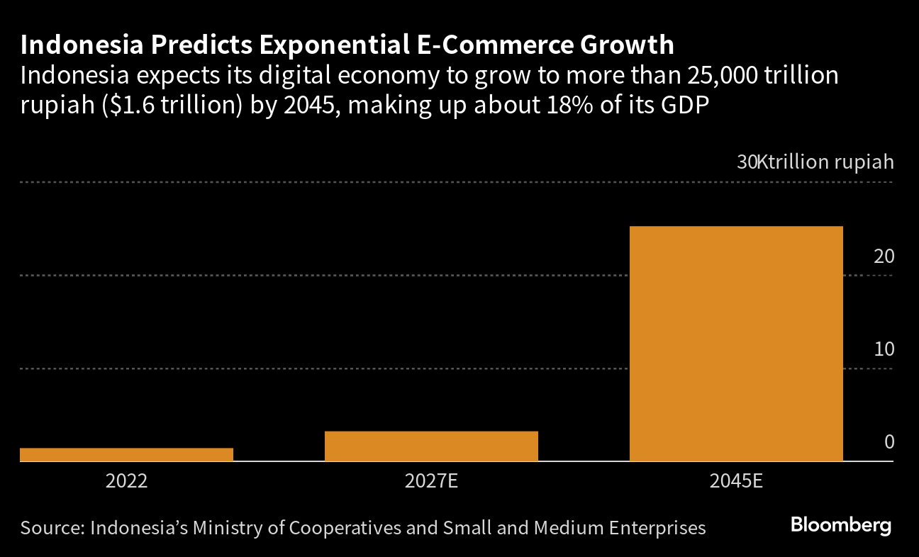 In past years, Shopee and Lazada have taken customers from domestic companies such as GoTo's Tokopedia, PT Bukalapak.com and PT Global Digital Niaga's Blibli. The government is concerned local contenders will be marginalized in a market worth $1.6 trillion by 2045, according to internal projections.