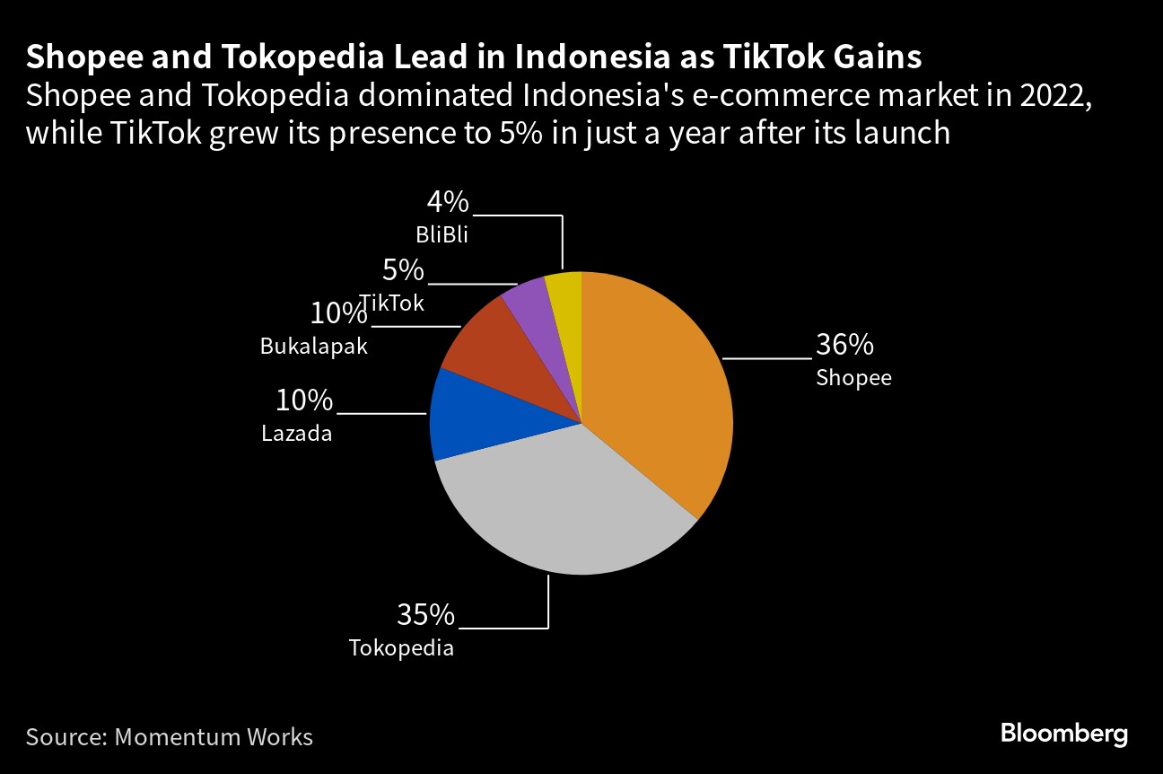 That groundswell culminated in sweeping regulations that will force TikTok to split payments from shopping in Indonesia — an unprecedented separation that could stall TikTok's e-commerce thrust just as it was gaining traction against Sea Ltd. and GoTo Group. It now needs to chart a new path for its fastest-growing feature, TikTok Shop, in a country of 278 million that was supposed to be a template for a global expansion from the US to Europe. And it's now got yet another powerful government to contend with — this time, far closer to its home turf.