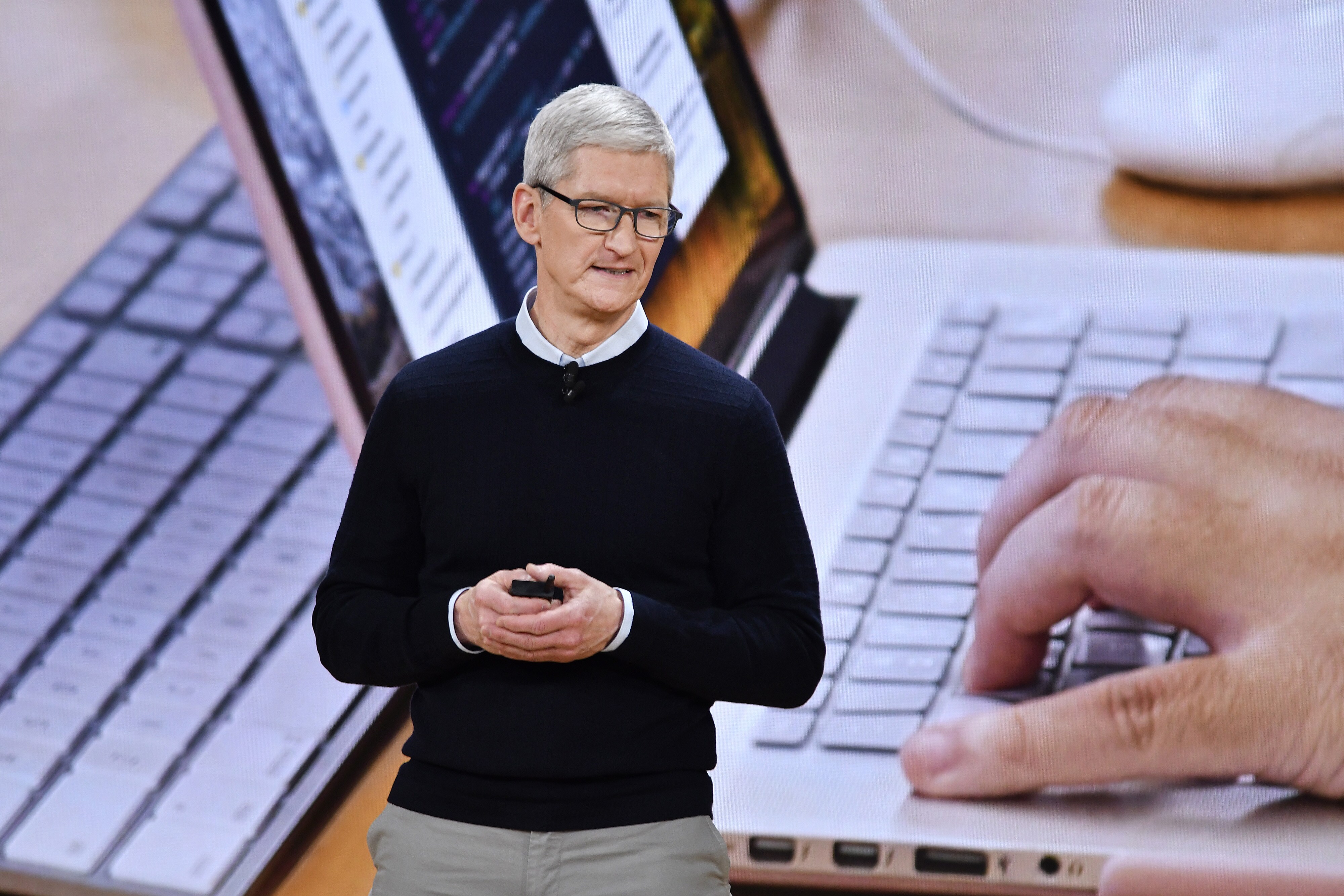 Tim Cook, chief executive office of Apple Inc., speaks during an event. (Photographer: Christopher Dilts/Bloomberg)