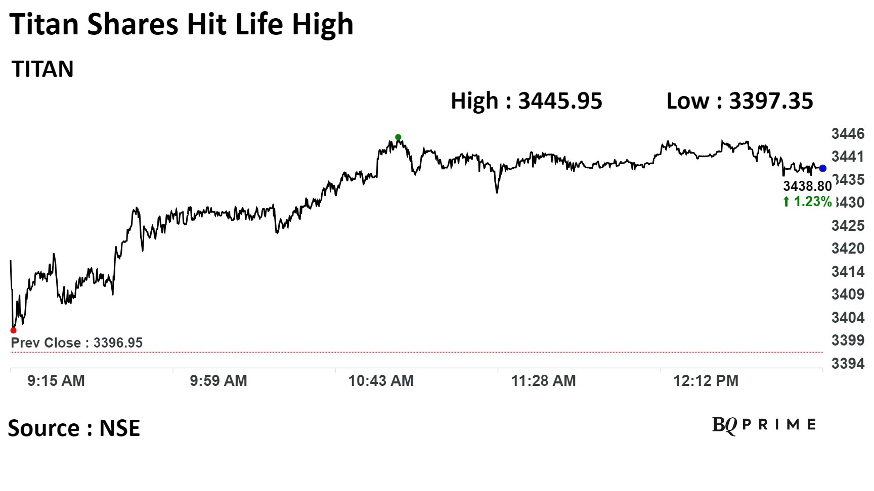 Shares of Titan Co. hit record high on Tuesday after a two-day fall amid expectations of strong demand ahead of the upcoming wedding season.