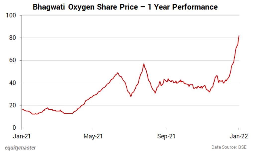 From trading at a mere Rs 11 a year ago, the stock currently trades at Rs 82. Just like National Oxygen, shares of Bhagwati Oxygen too are locked in 5% upper circuit since 22 December 2021.