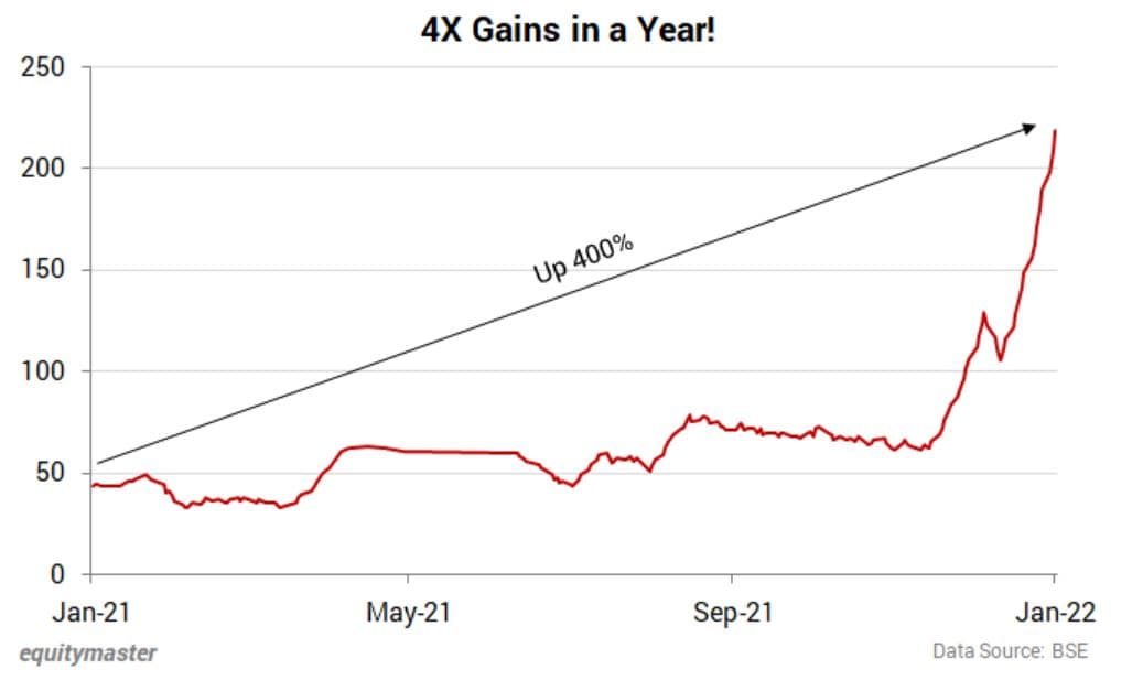 It's among the multibagger stocks of 2021. The stock delivered over 150% gains in the past one year.
