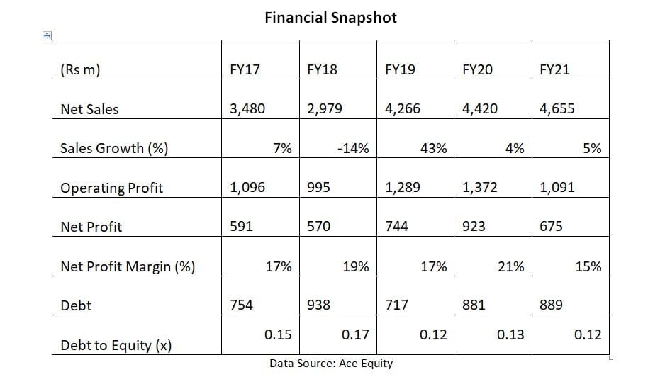 Coming to company's financials, it has a decent track record on the profitability and sales front while debt metrics are also under control.