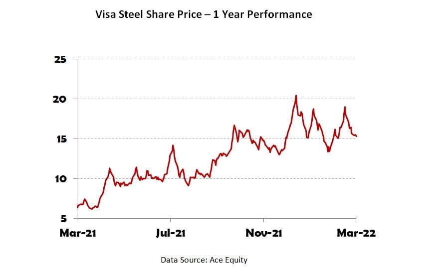 Next penny stock on our list is Visa Steel, engaged in the manufacturing of iron and steel products and high carbon ferro chrome.