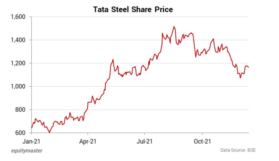 The shares of Tata Steel gave close to 81% return from January 2021.