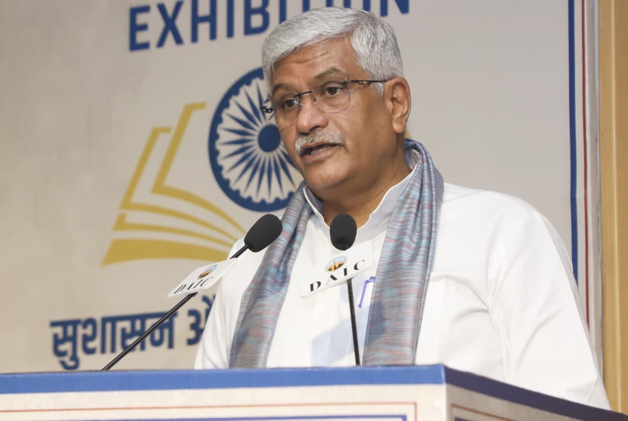 Union Minister Gajendra Singh Shekhawat speaking at an exhibition event on Friday. (Photo credit: Gajendra Singh Shekhawat's X profile)