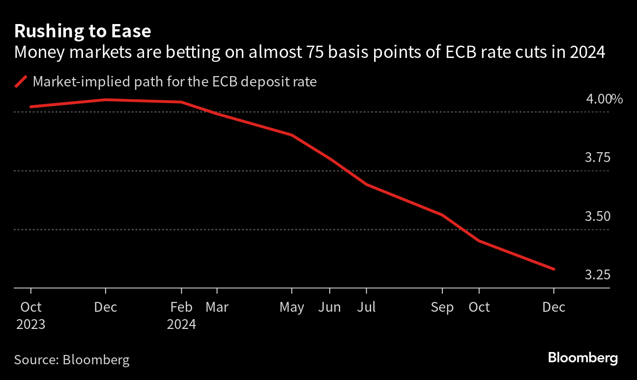 “I don't see ECB liking the expected easing that is priced by markets,” said Piet Christiansen, chief strategist at Danske Bank AS, whose base-case scenario is three cuts next year.