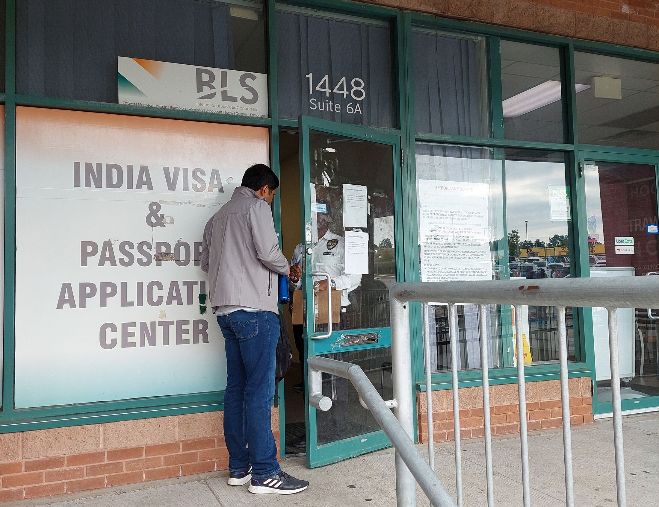 At the BLS office in Toronto, a sign told visitors that visa services were suspended for “operational reasons.” Most of the people in line on Thursday morning were there to renew their Indian passports, but others were trying to get advice on the visa suspension.