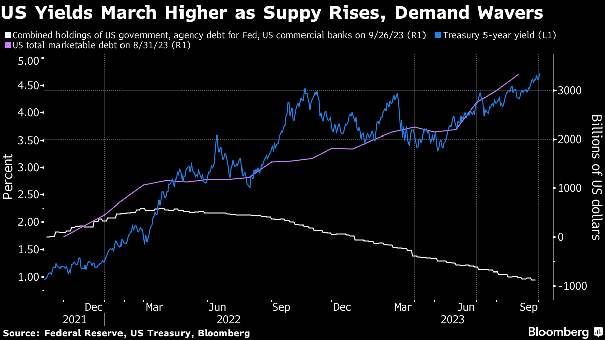 (Bloomberg) -- The slide in Treasuries has been excessive given recent economic data and Federal Reserve policy, suggesting it's instead being driven by fears over the swelling US deficit, some of Wall Street's biggest names say.