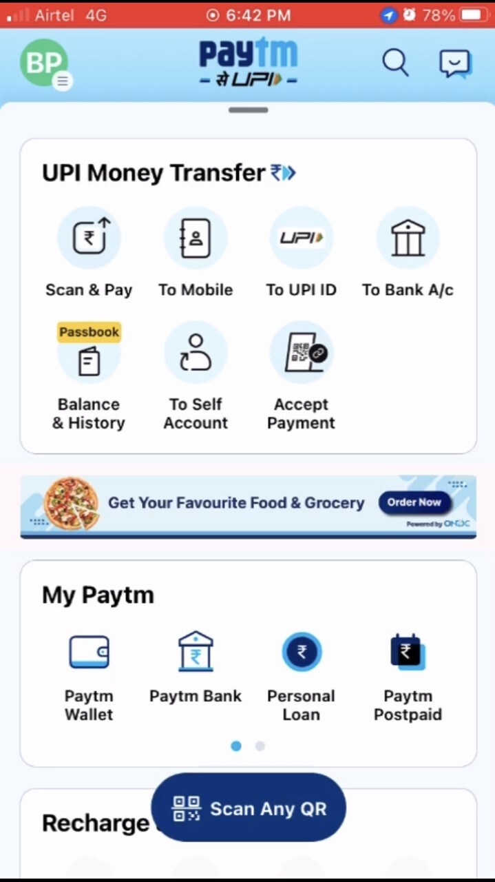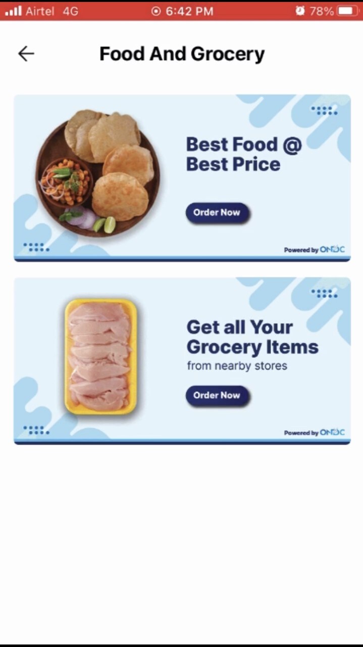 If opened in at of the 16 PIN codes, right under the UPI transfer box, a tab powered by ONDC shows a link to order food and grocery.
