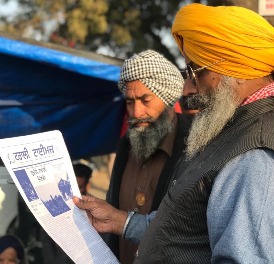 You'll find this and many more stories in the latest edition of Trolley Times, a four-page biweekly newspaper created in the midst of what has been called one of the world's biggest protests. Its first edition, released on Dec. 18, 23 days into the protest, had a print run of 2,000 copies. This week the team printed 5,000 copies of the second issue. They also translated the first edition into English. Its name is derived from the trolley—essentially the trailer of the ubiquitous tractor—that farmers have repurposed as their mobile homes for the duration of the protest.