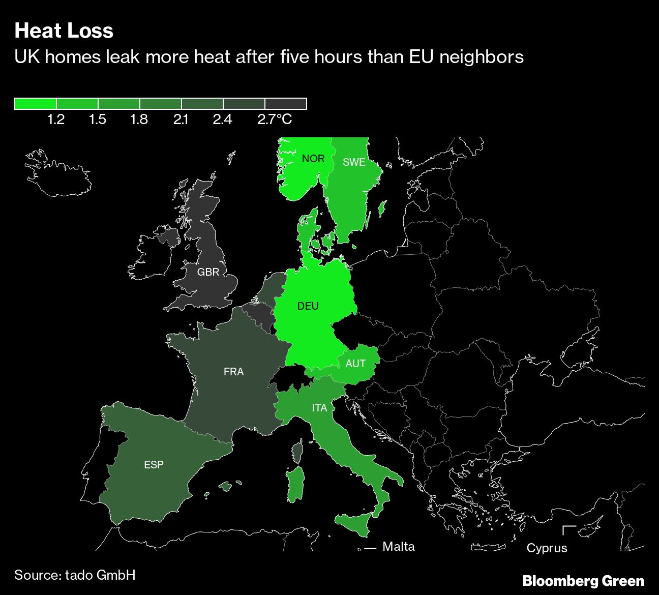 The block comes just as Britain's grid operator warned that some customers face the risk of three-hour power cuts as the country heads into winter with the smallest margin of back-up power in seven years. That makes energy-saving measures even more important, especially as the government this winter is subsidizing every unit of power consumed by households. Cuts to energy-efficiency programs have left the country with one of the leakiest housing stocks in Europe.