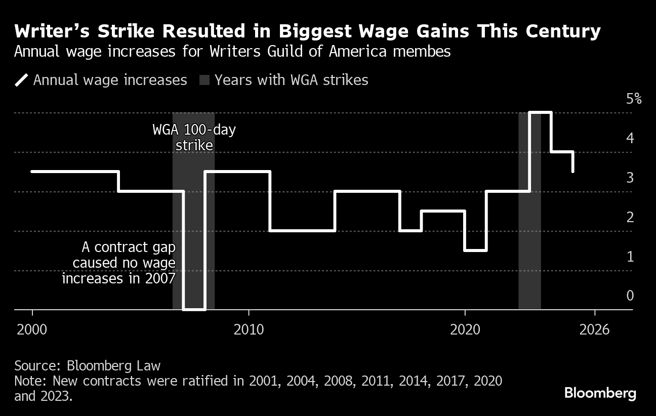 Since then, thousands of US workers have negotiated record-making deals using new playbooks. This summer, television and movie writers got guarantees for bigger wage boosts than they've seen this century, in part by using social media to marshal public support and encourage members to hold the line.