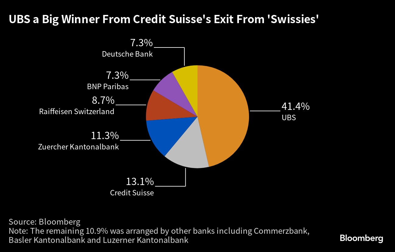 The biggest winner in this market from the March demise of Credit Suisse — the leading arranger of Swiss franc bonds for most of the last 20 years — is its acquirer UBS Group AG, though others such as Deutsche Bank AG, BNP Paribas SA and Commerzbank AG have also boosted their share of the niche debt.