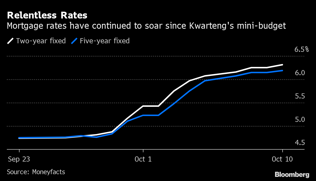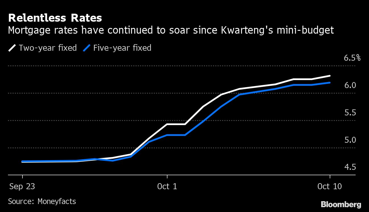 Britain's mortgage costs continued to climb on Monday as Chancellor of the Exchequer Kwasi Kwarteng prepares to address restless Tory politicians in a bid to regain the trust of his party on his handling of the economy.