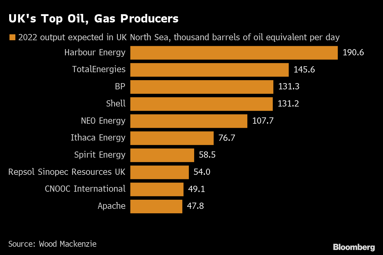 Harbour Energy Plc, a relative minnow globally but the biggest producer in the UK, may face about £840 million in extra costs from 2022 to 2024, Stifel analyst Chris Wheaton wrote in a note. While Harbour's investments offset some of the tax impact, “this could well incentivise the company to look more closely at acquisitions outside the UK,” he said.