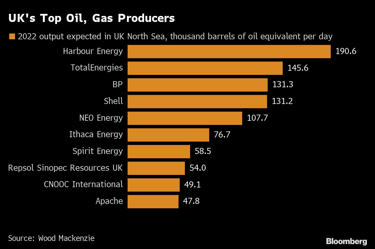 Harbour Energy Plc, a relative minnow globally but the biggest producer in the UK, may face about £840 million in extra costs from 2022 to 2024, Stifel analyst Chris Wheaton wrote in a note. While Harbour's investments offset some of the tax impact, “this could well incentivise the company to look more closely at acquisitions outside the UK,” he said.