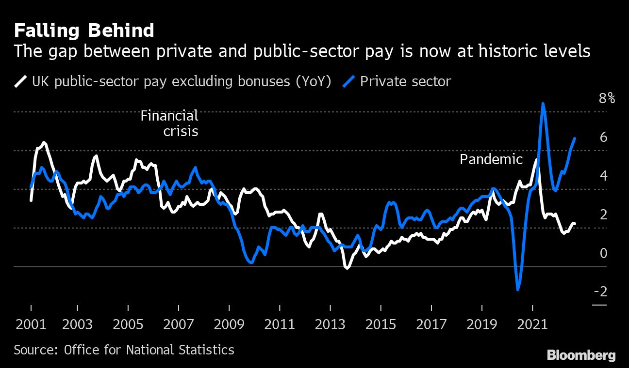 “Ultimately this money is coming from taxpayers,” Sunak said when asked about public-sector pay. “Everyone watching will also know that they're suffering rising bills, they'll be having those conversations with their own employers about what's affordable in these difficult circumstances.”